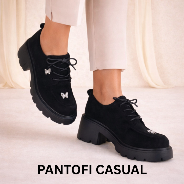 Pantofi dama Casual Negri din Piele Ecologica Ulmira
