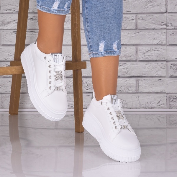 Adidasi dama Albi din Piele Ecologica Pluvina