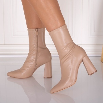Botine dama Bej din Piele ecologica Rumia