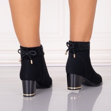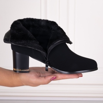 Botine Dama Imblanite cu toc Negre din Piele Ecologica Intoarsa Meldora