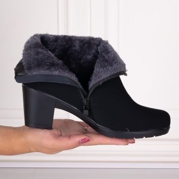 Botine Dama Imblanite cu toc Negre din Piele Ecologica Intoarsa Jomya