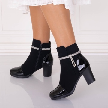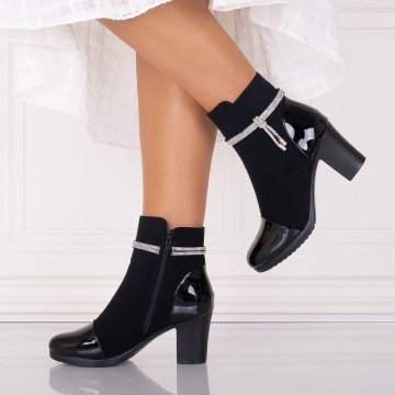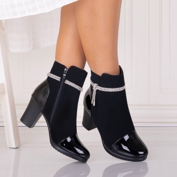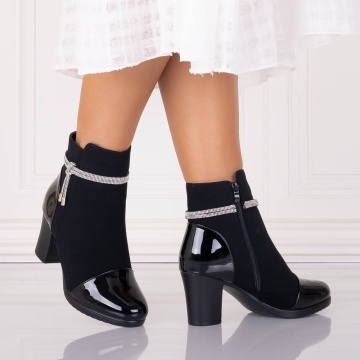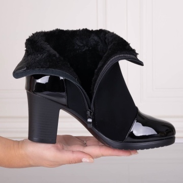Botine Dama Imblanite Negre din Piele Ecologica Intoarsa Serava