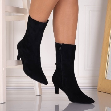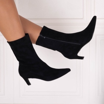 Botine dama Negre din Piele Ecologica Intoarsa Loretta