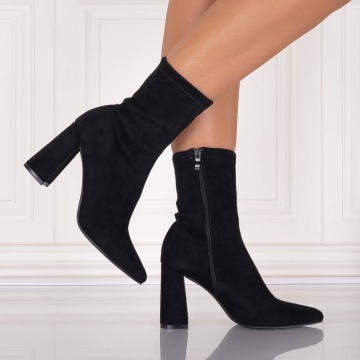 Botine dama Negre din Piele ecologica Intoarsa Rumia