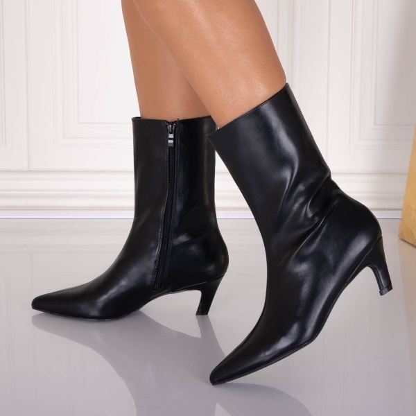 Botine dama Negre din Piele Ecologica Loretta