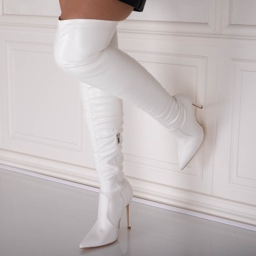 Cizme dama cu toc Albe din Piele Ecologica Rinaia