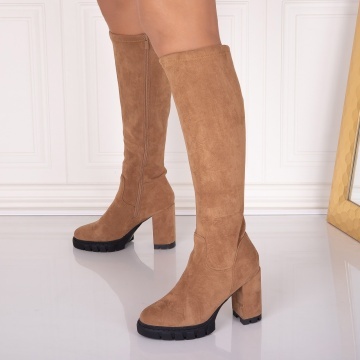 Cizme dama cu toc Kaki din Piele Ecologica Intoarsa Nomalia