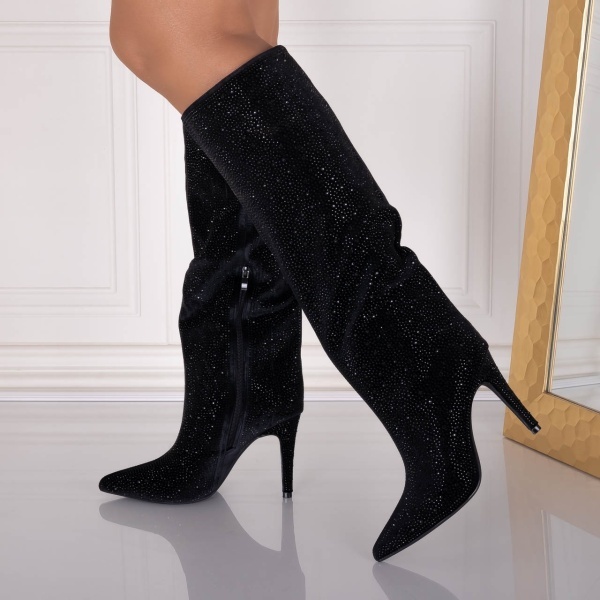 Cizme dama cu toc Negre din Piele Ecologica Intoarsa Latorya