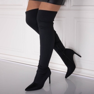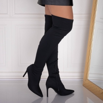 Cizme dama cu toc Negre din Textil/neopren Marilya