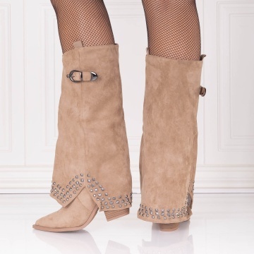 Cizme dama Kaki din Piele Ecologica Intoarsa Camelia