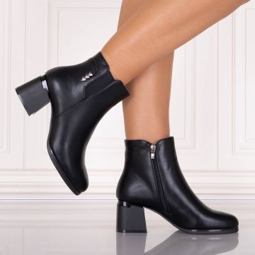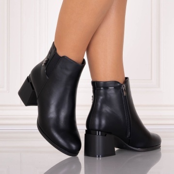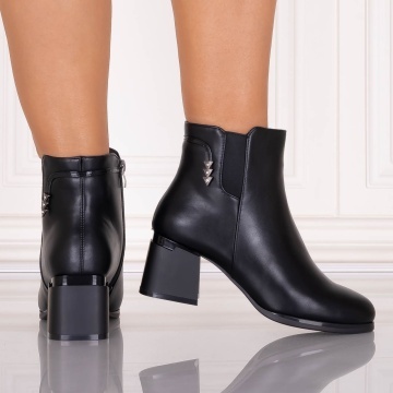 Ghete Dama cu toc imblanite Negre din Piele Ecologica Arilya