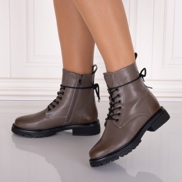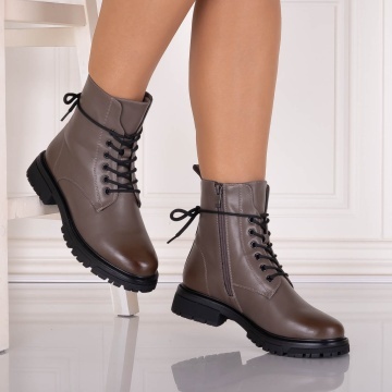 Ghete dama Imblanite Gri din Piele Ecologica Lanaura
