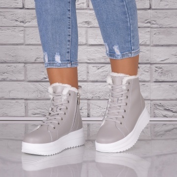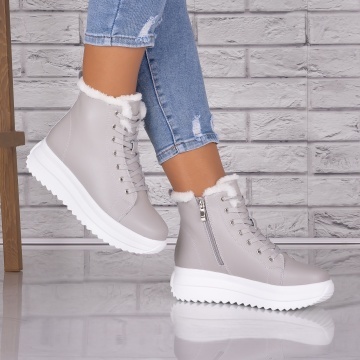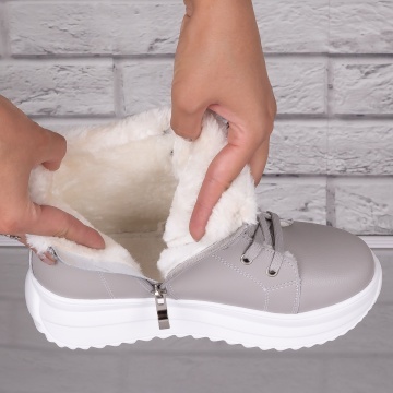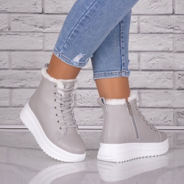 Ghete dama Imblanite Gri din Piele Naturala Weber