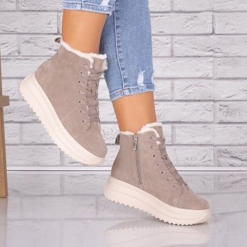 Ghetele pentru dama Ghete dama Imblanite Kaki din Piele Naturala Intoarsa Weber sunt o optiune potrivita pentru momentele in care iti doresti incaltaminte care sa arate bine si sa fie usor de purtat intreaga zi. Fiind pozitionati in zona de ghete casual, acesti pantofi reusesc sa ofere un stil echilibrat, potrivit atat pentru tinute relaxate, cat si pentru combinatii ceva mai elegante. Linia lor simpla, dar atent conturata, pune in valoare forma piciorului, iar constructia este gandita pentru a oferi stabilitate la fiecare pas. In imaginile produsului se observa textura materialului si modul in care finisajele au fost lucrate, sugerand o incaltaminte bine realizata si usor de asortat. Sunt o alegere practica pentru birou, iesiri in oras sau drumuri zilnice prin oras, mai ales daca iti place sa pastrezi un stil discret, dar ingrijit. Adauga acest model in garderoba ta pentru a avea mereu la indemana o pereche de pantofi pe care te poti baza.Alte modele