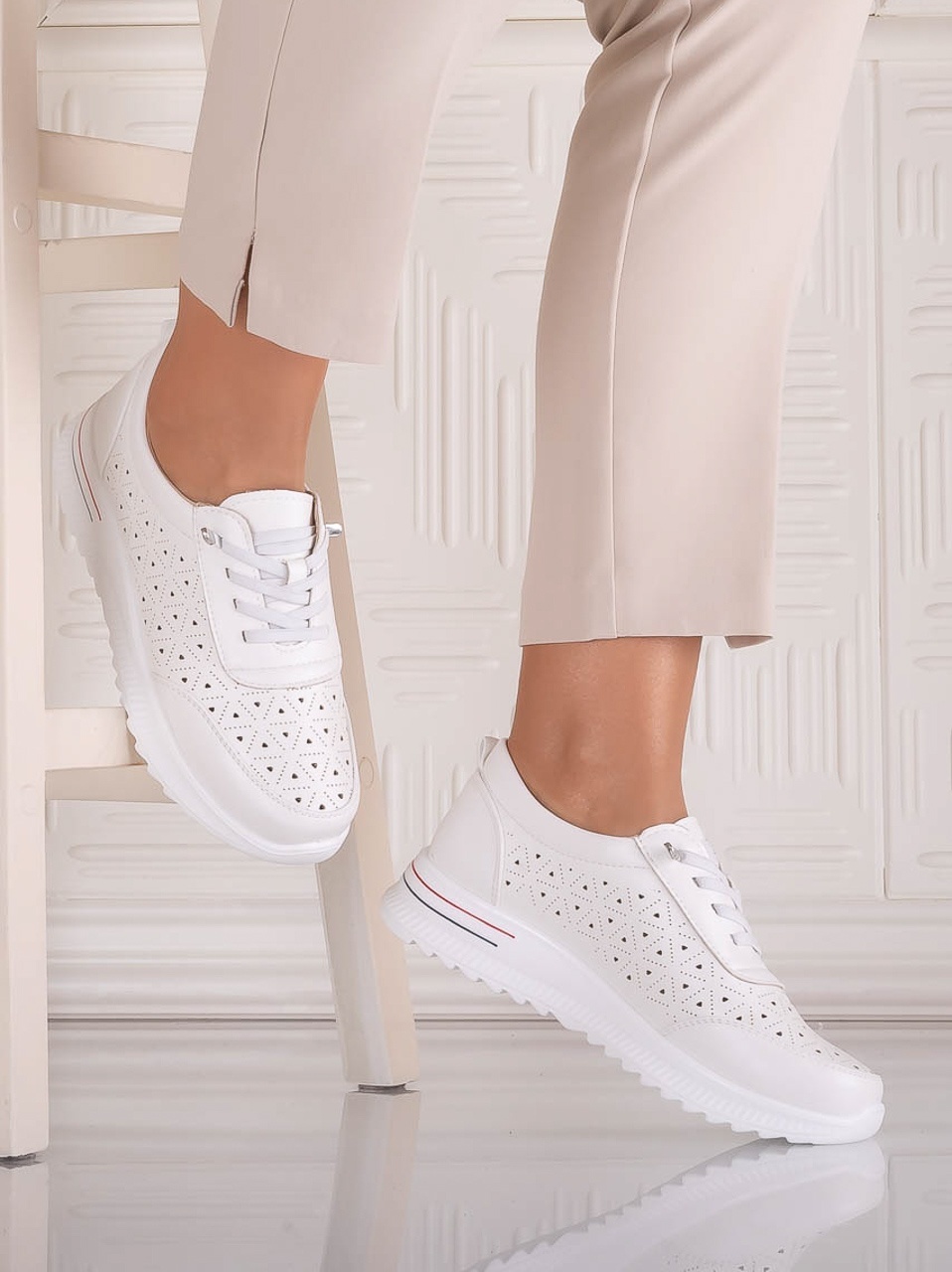 Pantofi damă casual albi din piele ecologică Nolya – prospețime și confort zilnic