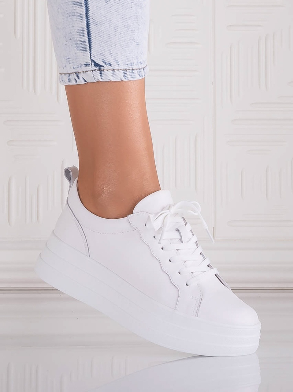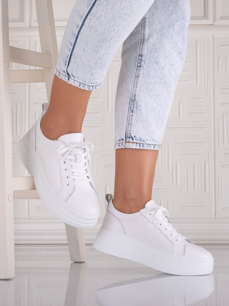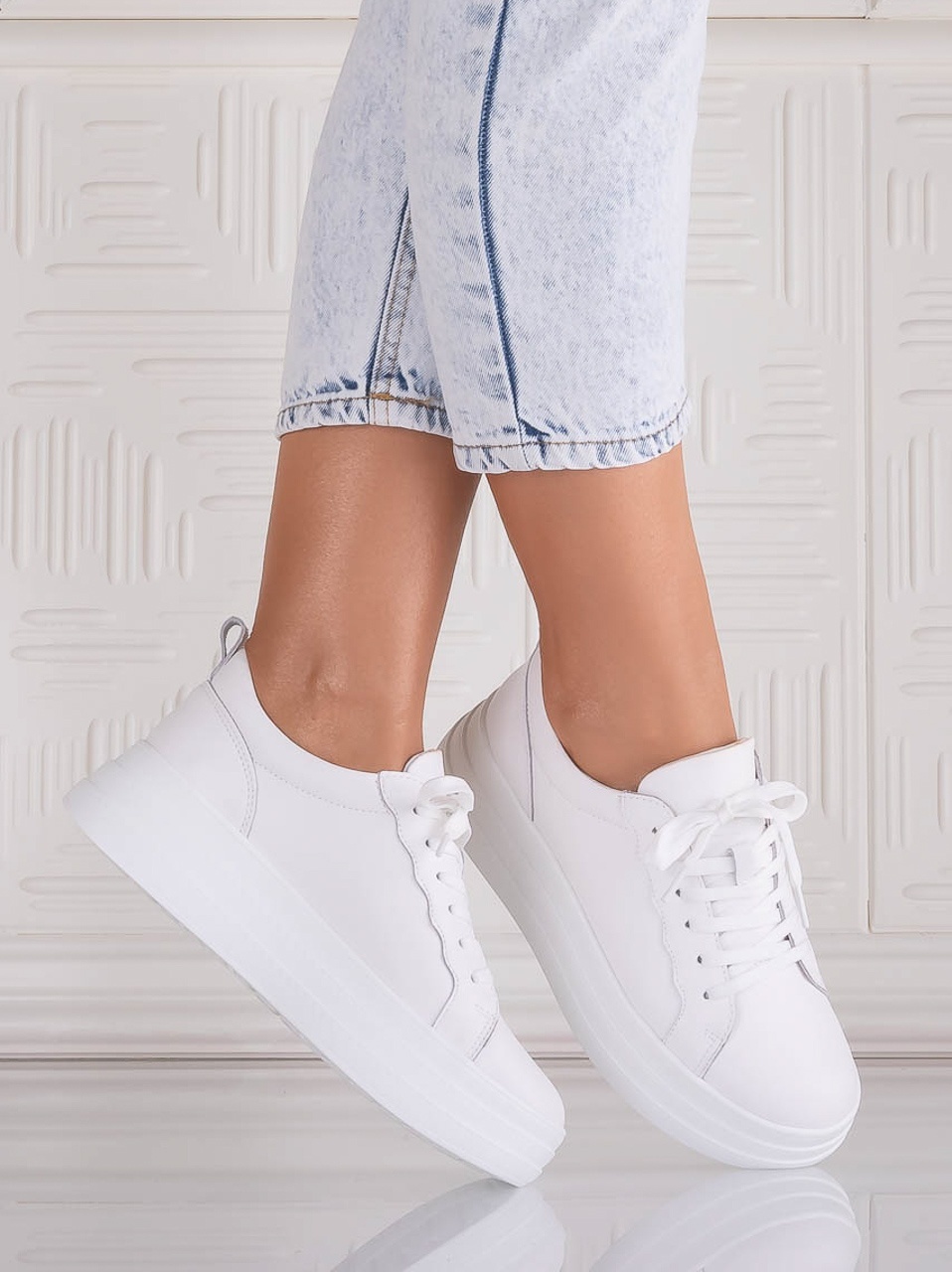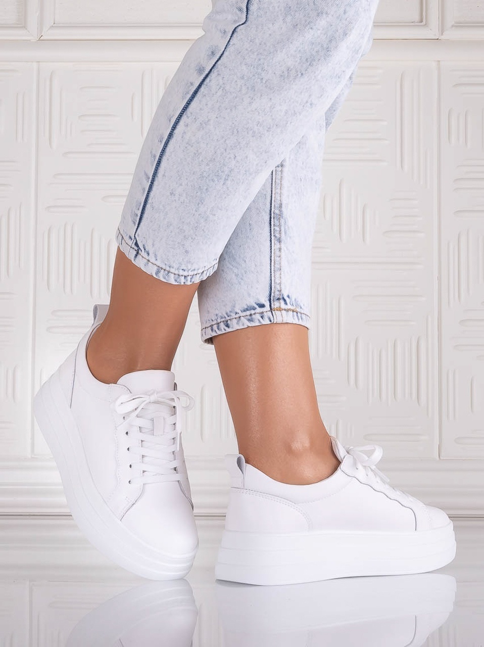 Pantofi damă casual albi din piele naturală Sadrina – stil modern și confort natural