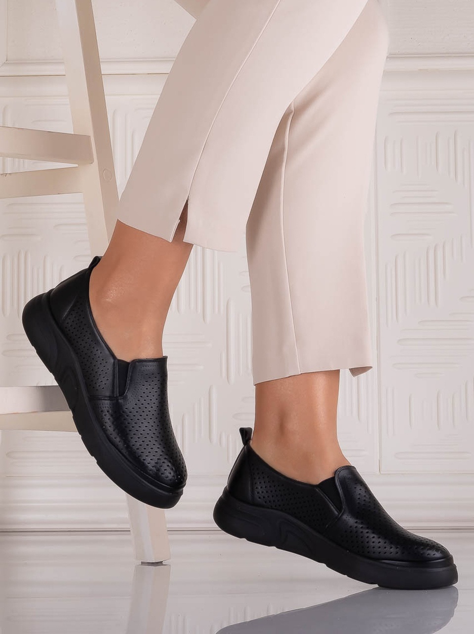 Pantofi dama Casual Negri din Piele Ecologica Nilasa