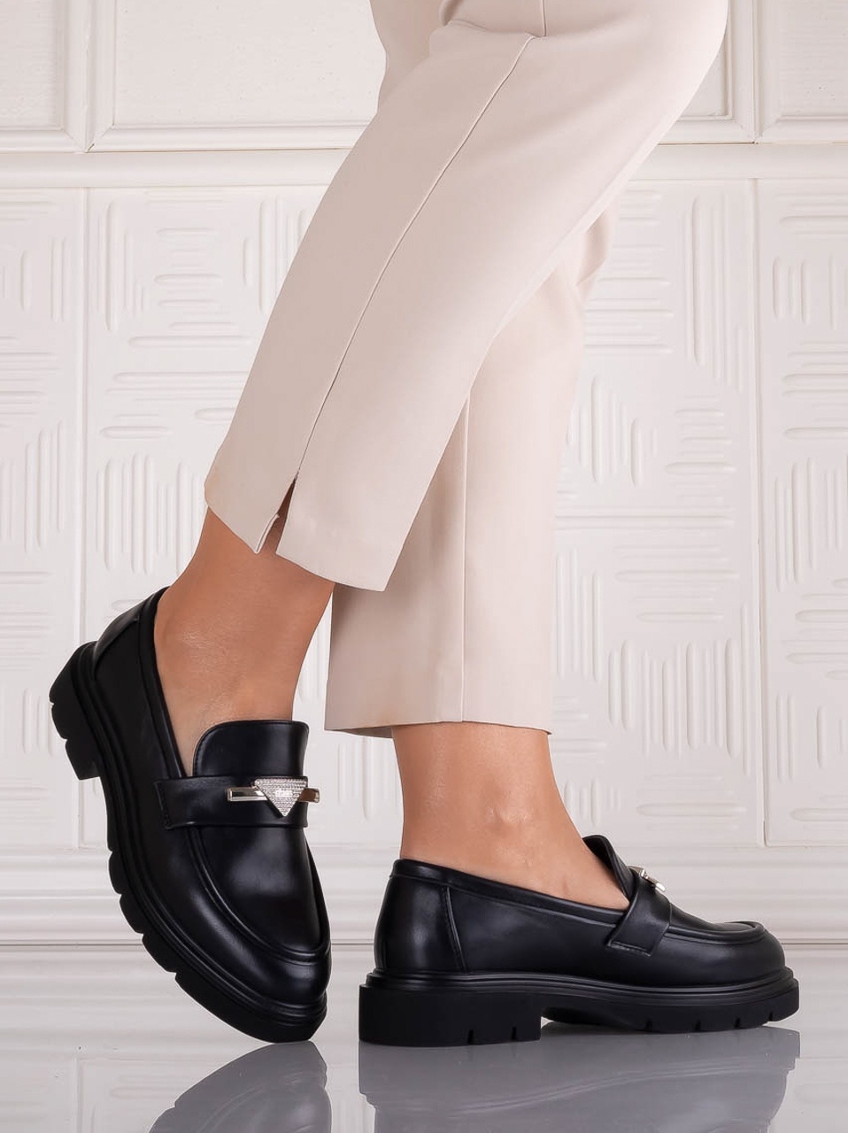 Pantofii damă casual negri din piele ecologică Sudera sunt ideali pentru femeile care își doresc o încălțăminte practică, modernă și ușor de asortat. Culoarea neagră oferă eleganță discretă, iar designul casual îi face potriviți pentru activitățile zilnice.
