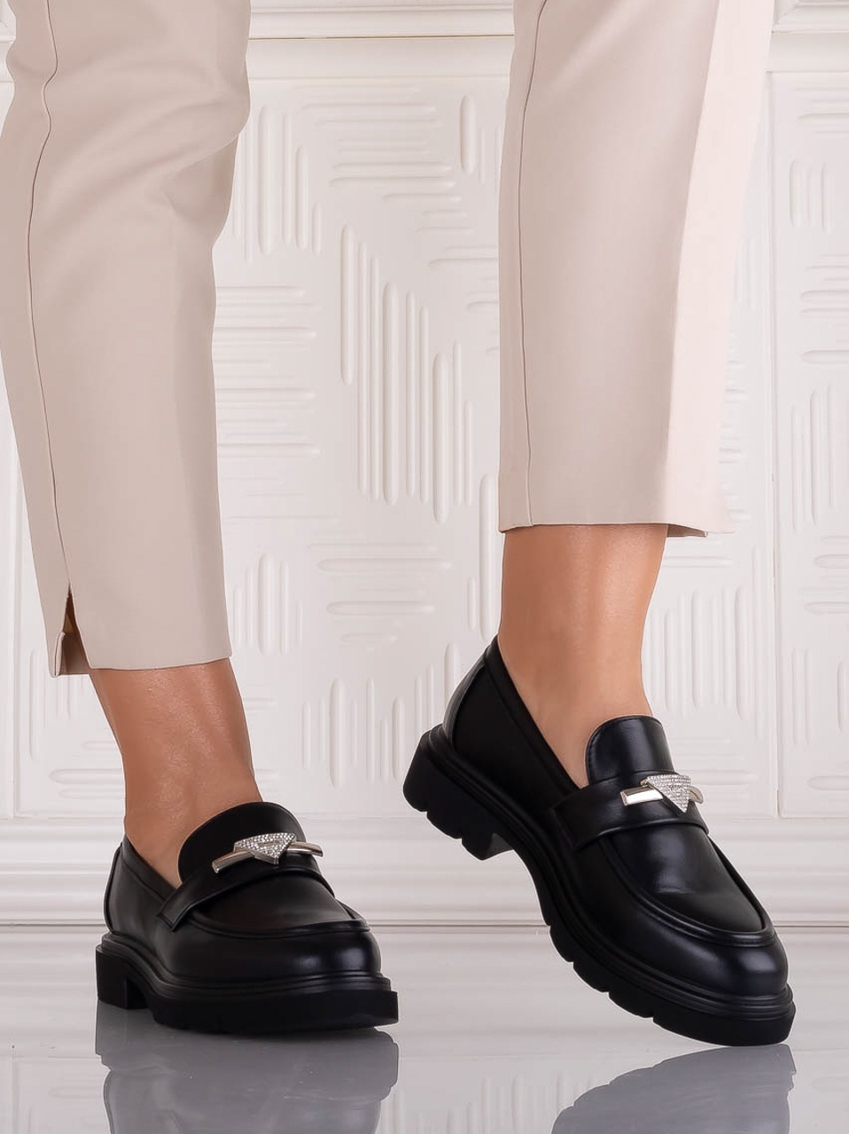 Pantofi dama casual Negri din Piele Ecologica Sudera