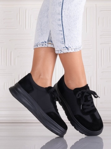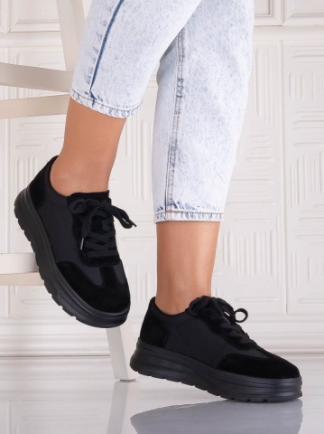 Pantofi dama casual Negri din Piele Naturala Intoarsa si textil Narella