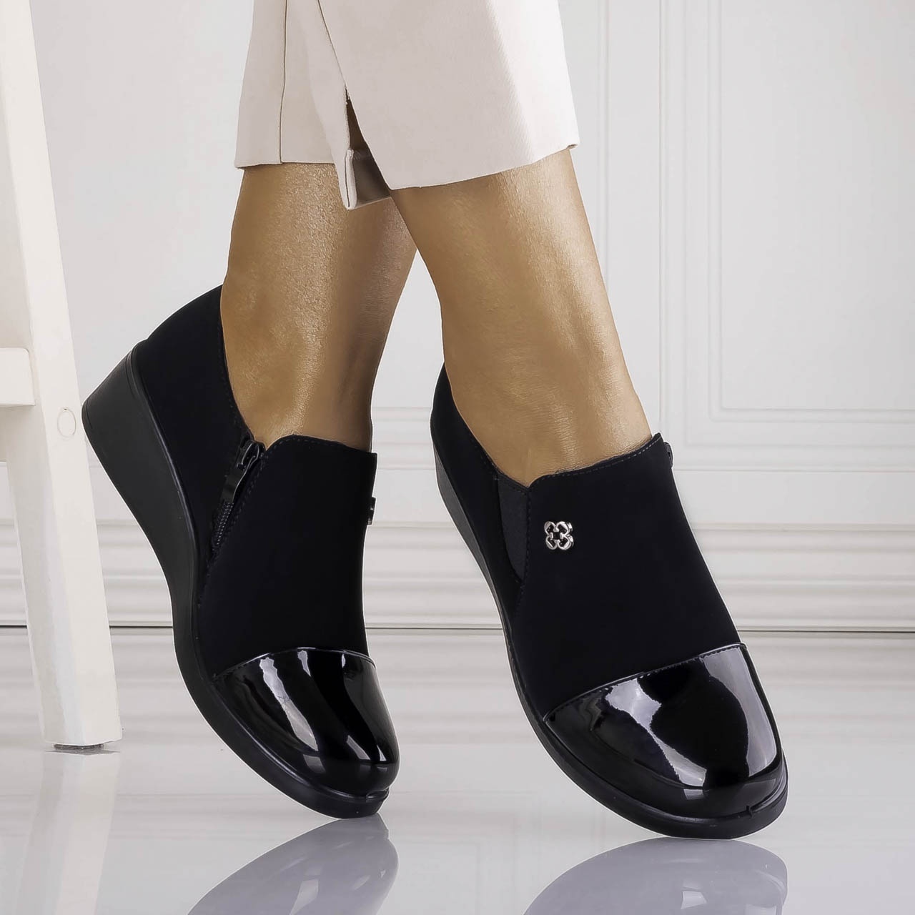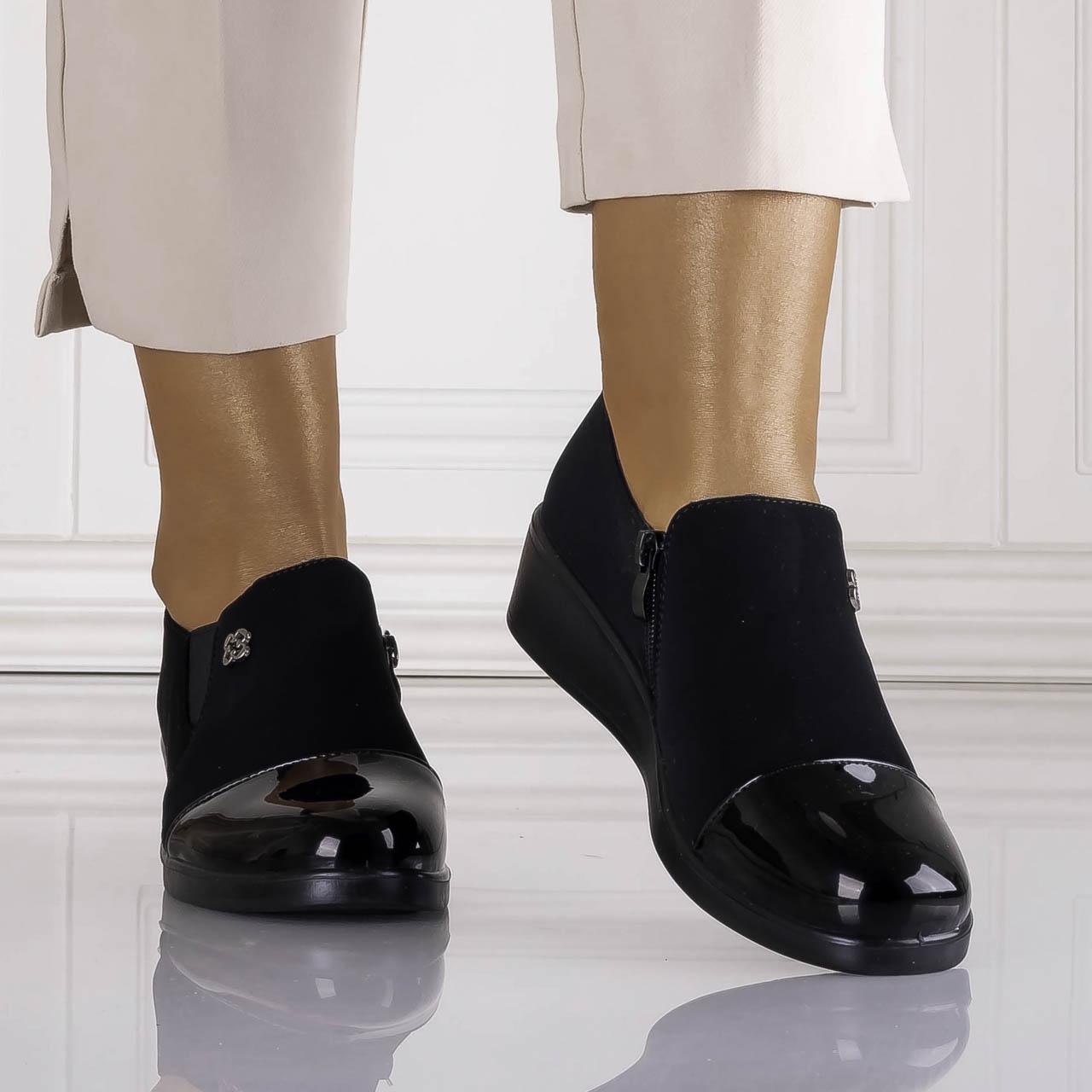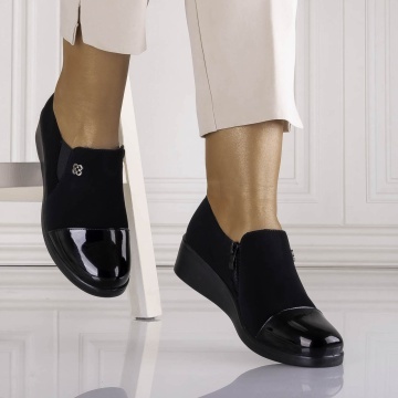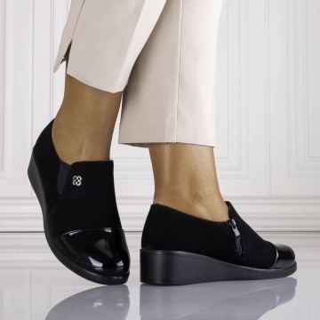 Pantofi dama cu platforma Negri din Piele Ecologica Intoarsa Adinca