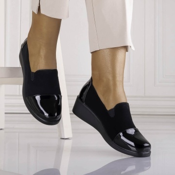 Pantofi dama cu platforma Negri din Piele Ecologica Intoarsa Eghima