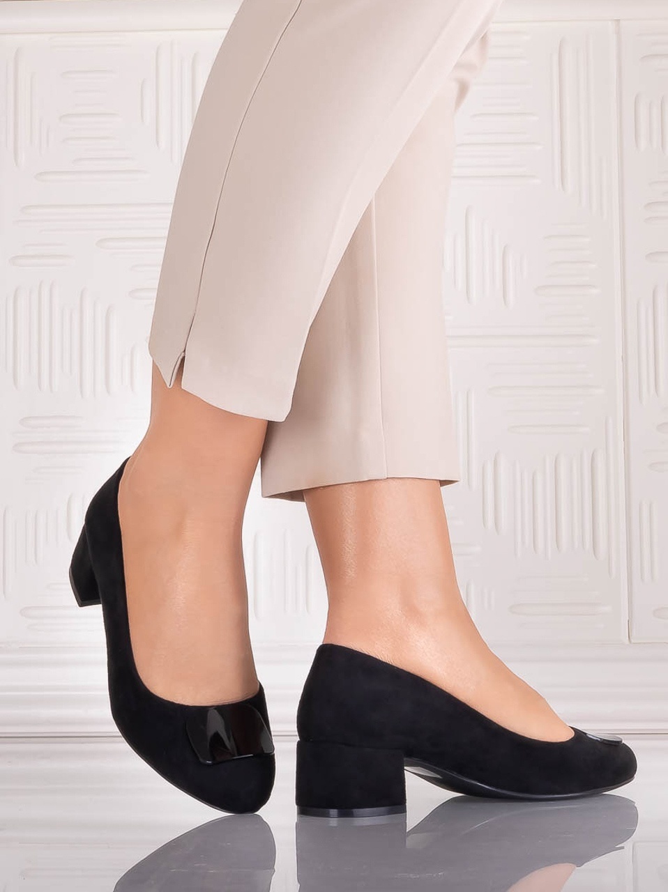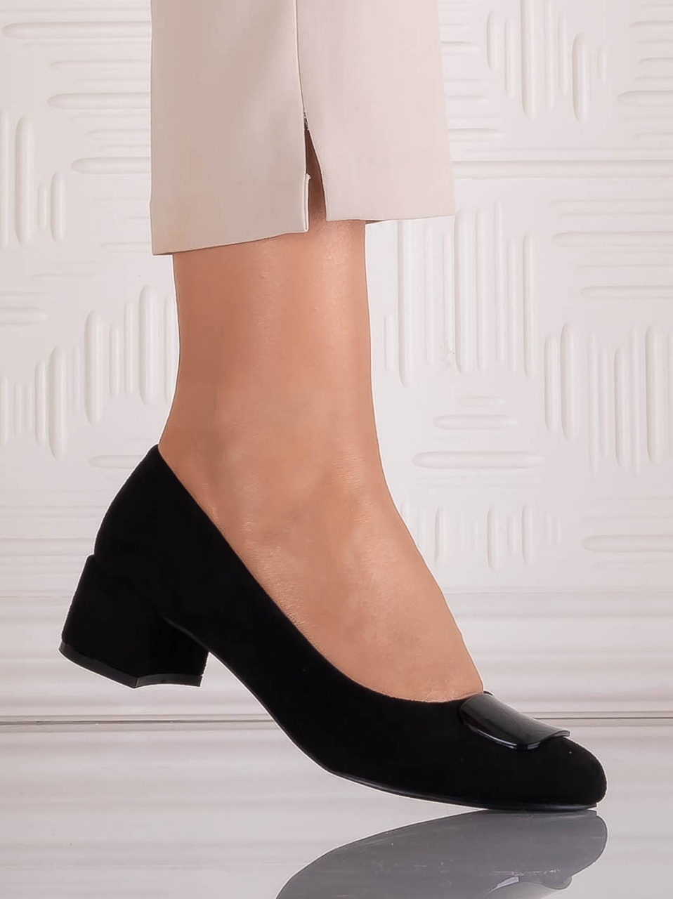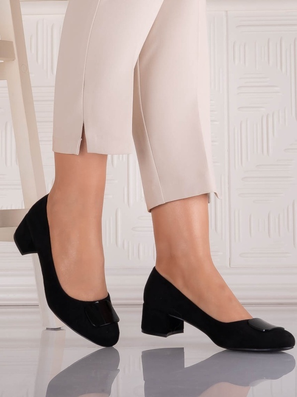 Pantofi damă negri din piele ecologică întoarsă Mariva – eleganță și confort