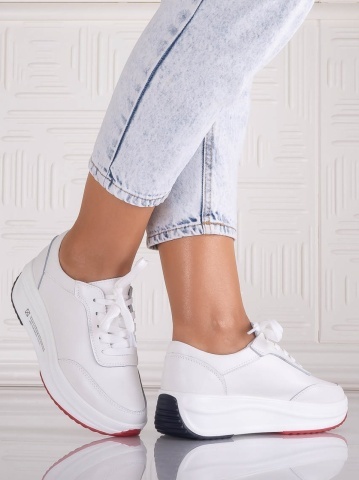 Pantofi damă sport albi din piele naturală Amadi – confort premium și stil modern