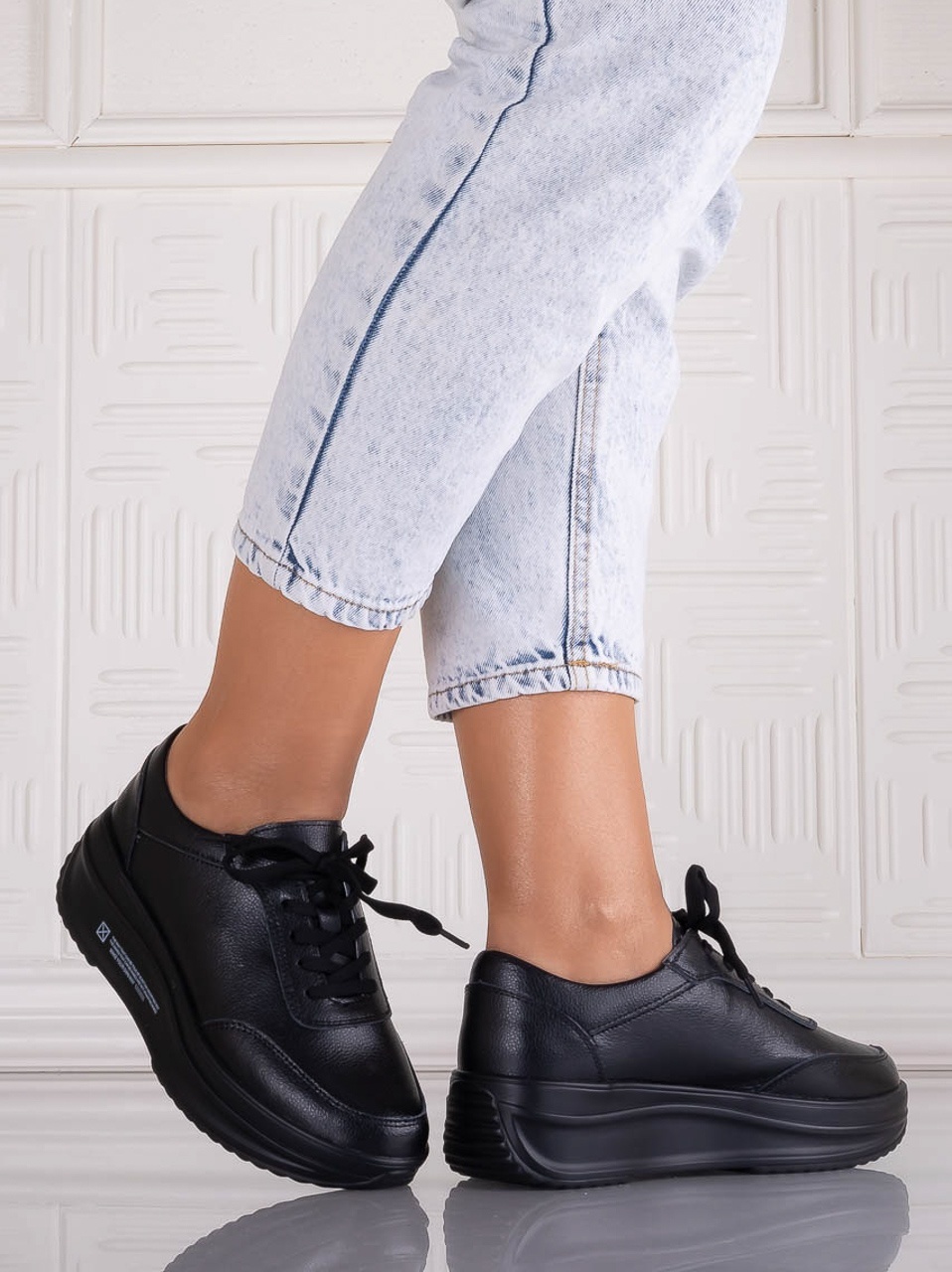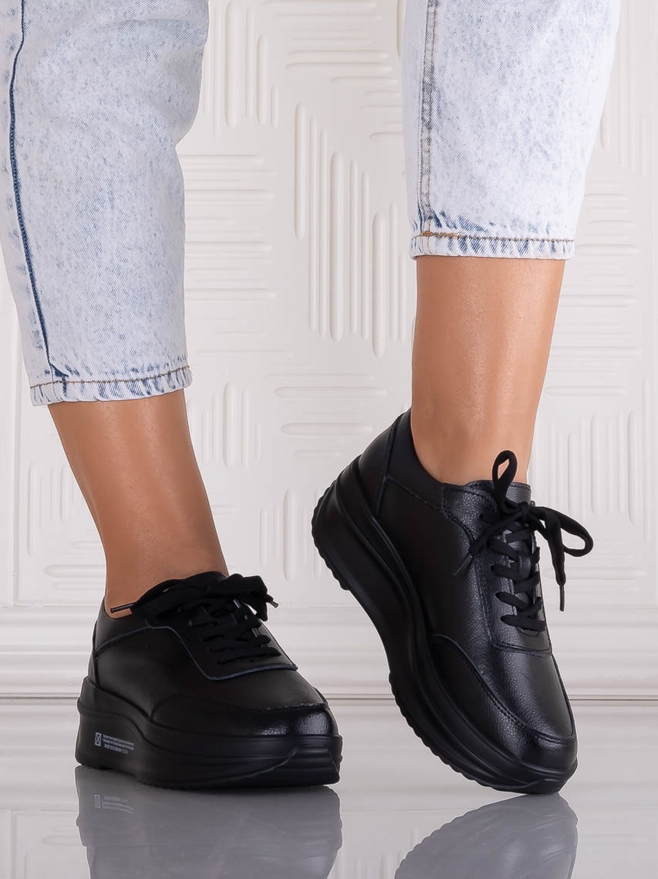 Pantofi damă sport negri din piele naturală Amadi – confort premium și stil modern