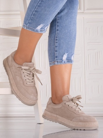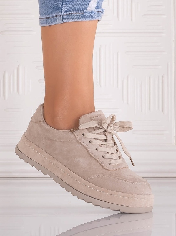 Sneakers damă bej din piele ecologică întoarsă Daliva – stil relaxat și confort urban
