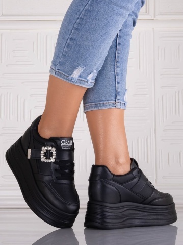 Sneakers dama cu platforma Negri din Piele Ecologica Alorna